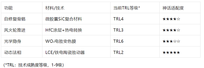 关节部分需要灵活,可能用陶瓷基复合材料,或者结合碳纤维增强材料,增加韧性。风火轮可能需要耐高温材料,比如氧化锆陶瓷,或者加入石墨烯涂层增强导热和耐热性。混天绫可能需要柔性材料,比如碳纤维编织物,或者陶瓷纤维织物,既有强度又柔软。